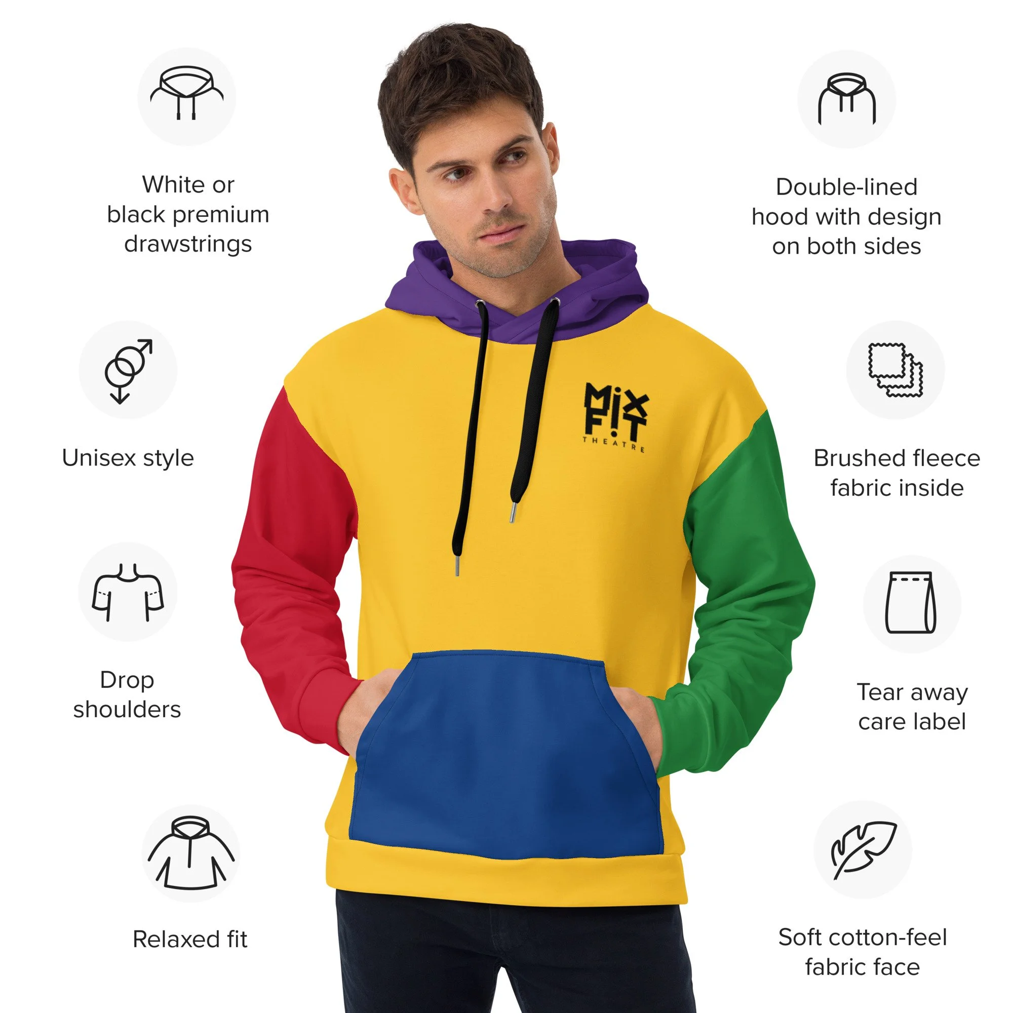 • Double-lined hood with design on both sides